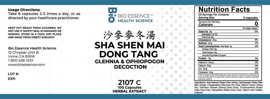 Bio Essence Health Science, Sha Shen Mai Dong Tang, Glehnia & Ophiopogon Decoction, 100 Capsules