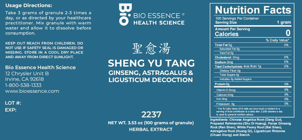 Bio Essence Health Science, Sheng Yu Tang, Ginseng, Astragulus & Ligusticum Decoction, Granules, 100 grams