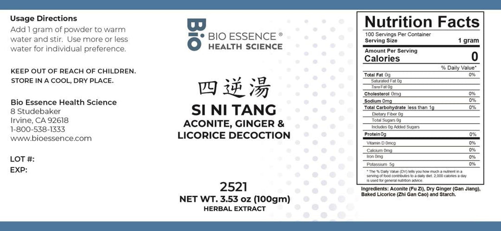 Bio Essence Health Science, Si Ni Tang, Aconite, Ginger & Licorice Decoction, Granules, 100 grams