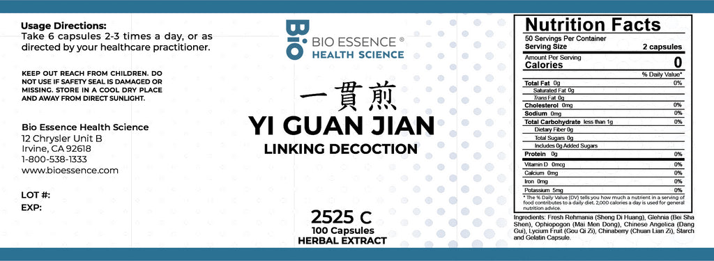 Bio Essence Health Science, Yi Guan Jian, Linking Decoction, 100 Capsules