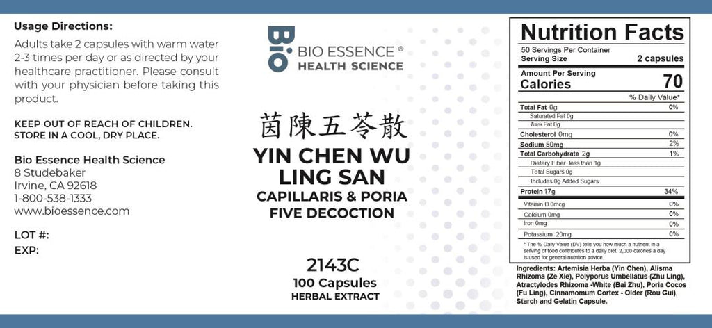 Bio Essence Health Science, Yin Chen Wu Ling San, Capillaris & Poria Five Deco, 100 Capsules