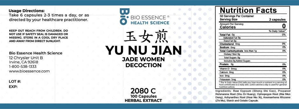 Bio Essence Health Science, Yu Nu Jian, Jade Women Decoction, 100 Capsules