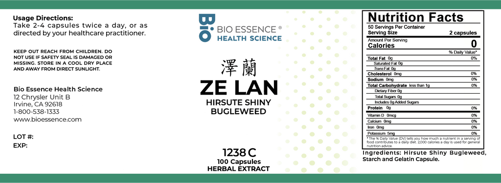 Bio Essence Health Science, Ze Lan, Shiny Bugleweed, 5:1 Extract Capsules, 100 Capsules