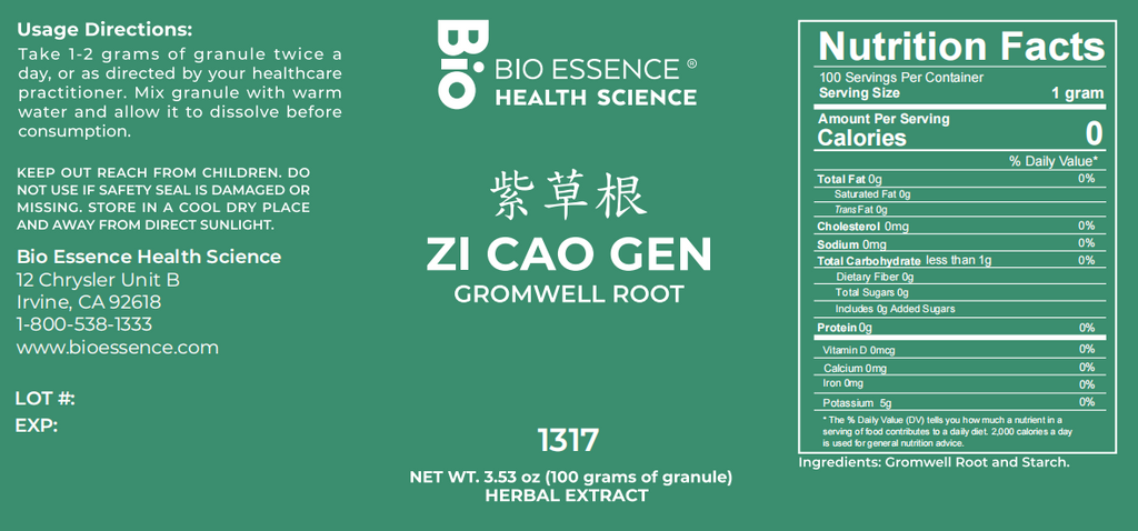 Bio Essence Health Science, Zi Cao Gen, Lithospermum Root, 5:1 Extract Granules, 100 grams