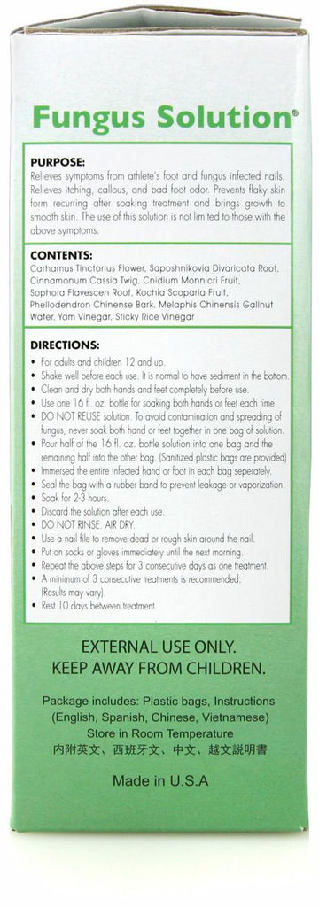 Together with 100% natural Chinese Herbal extracts and traditional soaking method, FUNGUS SOLUTION provides the best results for people who suffer from fungal infection.