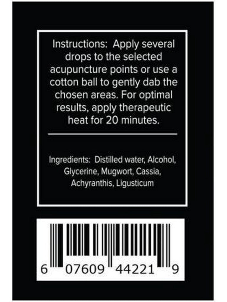 Apply several drops to the selected acupuncture points or use a cotton ball to gently dab the chosen areas. For optimal results, apply therapeutic heat for 20 minutes.