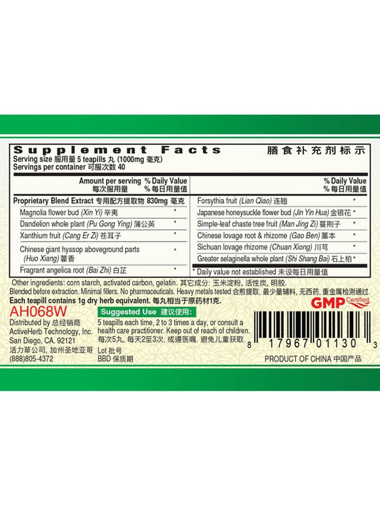 Te Xiao Bi Min Gan Pian (Te Xiao Bi Min Gan Wan, Allerpeace™, formerly Nasal AllergiClear) is a Chinese herbal medicine specially formulated for supporting clear and healthy nasal passages.