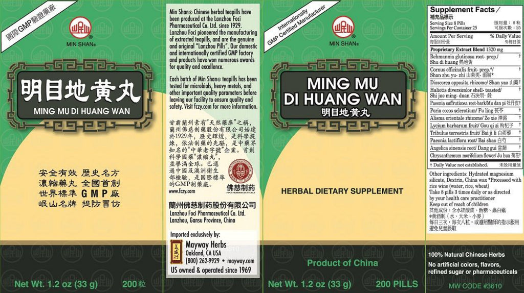Min Shan, Ming Mu Di Huang Wan, 200 ct