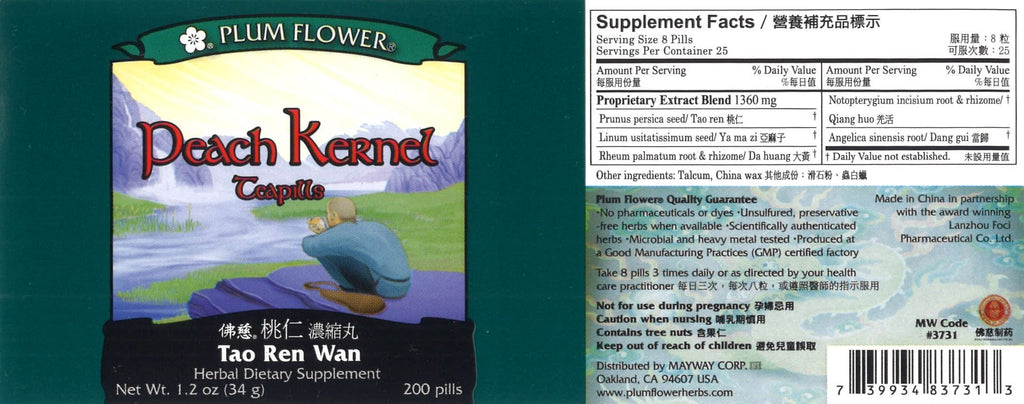 Plum Flower, Peach Kernel Formula, Tao Ren Wan, 200 ct