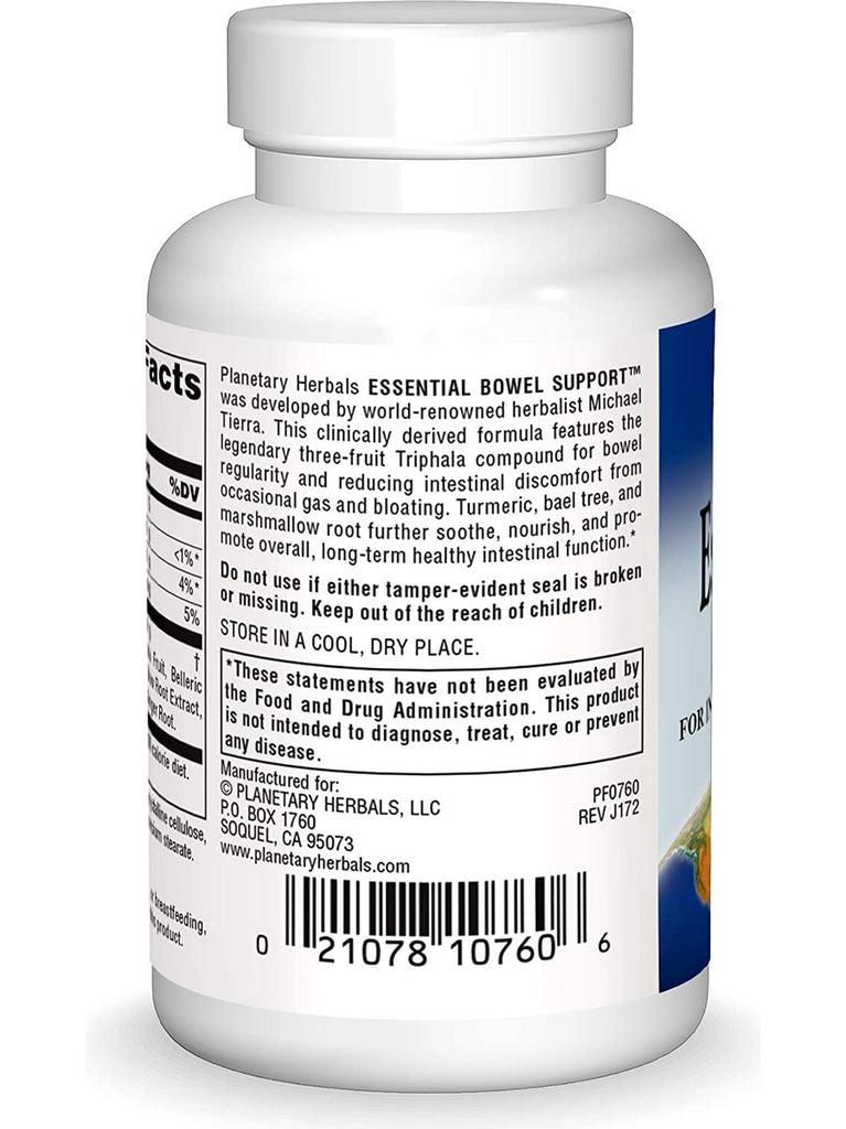 Planetary Herbals Essential Bowel Support™ was developed by world-renowned herbalist Michael Tierra. This clinically derived formula features the legendary three-fruit Triphala compound for bowel regularity and reducing intestinal discomfort from occasional gas and bloating. Turmeric, bael tree, and marshmallow root further soothe, nourish, and promote overall, long-term healthy intestinal function.