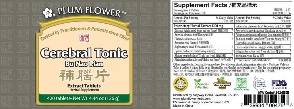 Plum Flower, Cerebral Tonic, Bu Nao Pian, 420 Tablets