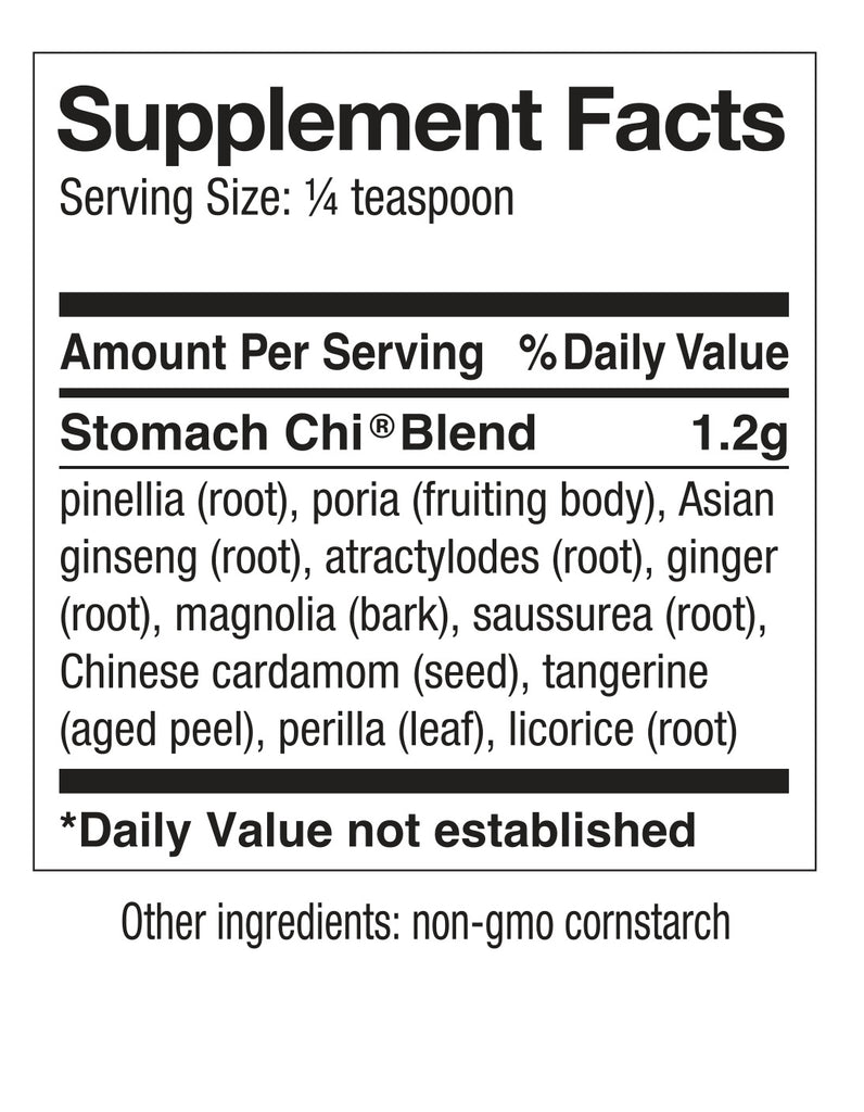 Do you need more digestive support? Stomach Chi is a blend of eleven nourishing herbs to promote gastric well-being and overall digestive health. Stomach Chi strengthens spleen and stomach chi, allowing your digestive system to process nourishment. Stomach Chi is safe for all ages and has no contraindications.