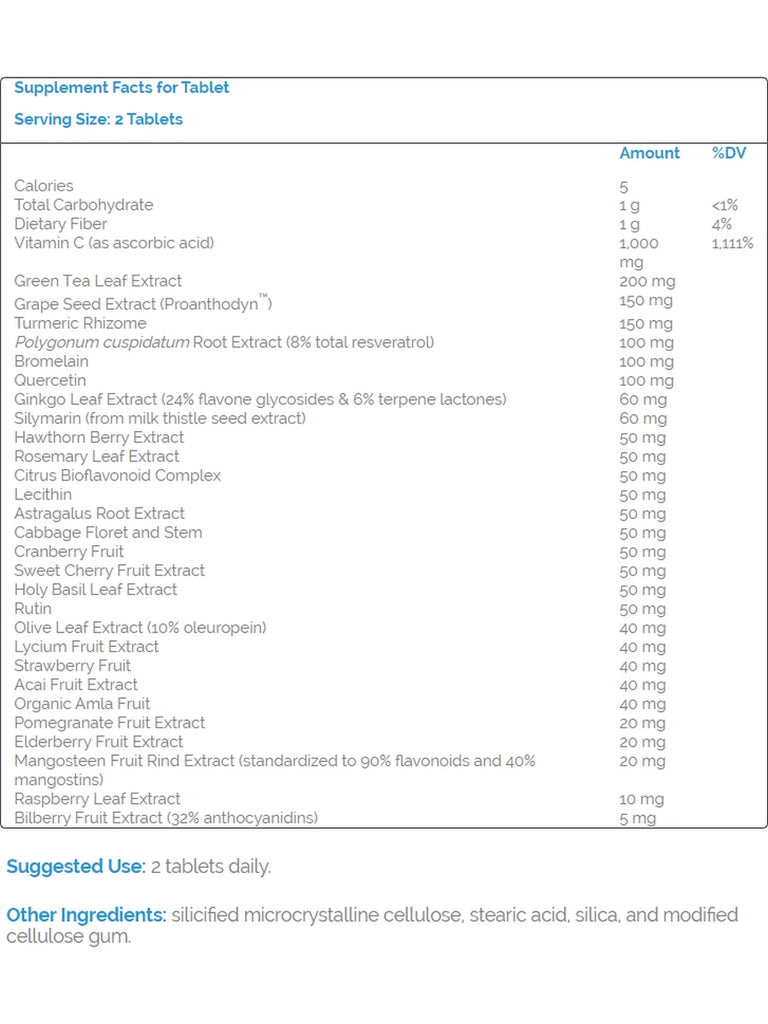 BerryOxidants™ is a power-packed antioxidant complex featuring standardized extracts from fruits, especially berries, as well as herbs and spices. This synergistic formula combines more than 25 plant-derived free radical fighters with a full 500 mg per tablet of the antioxidant vitamin C. Some scientific evidence suggests that consumption of antioxidant vitamins may reduce the risk of certain forms of cancer. However, the FDA has determined that this evidence is limited and not conclusive.