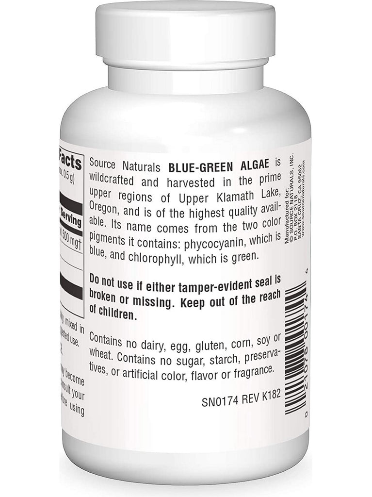 Source Naturals Blue-Green Algae is wildcrafted and harvested in the prime upper regions of Upper Klamath Lake, Oregon, and is of the highest quality available. Its name comes from the two color pigments it contains: phycocyanin, which is blue, and chlorophyll, which is green.