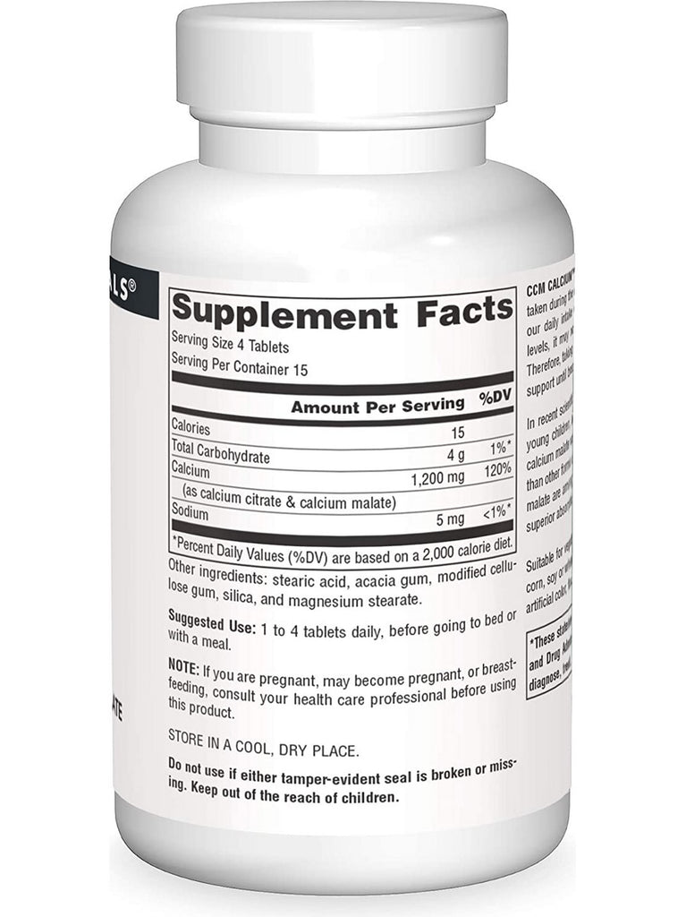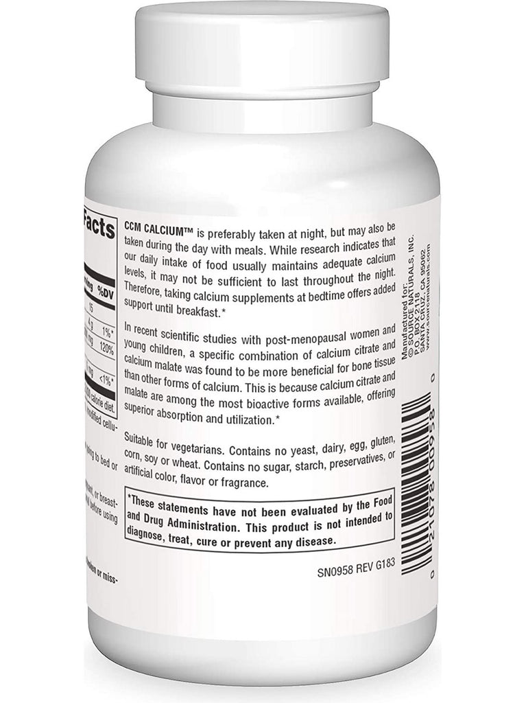 CCM Calcium™ is preferably taken at night, but may also be taken during the day with meals. While research indicates that our daily intake of food usually maintains adequate calcium levels, it may not be sufficient to last throughout the night. Therefore, taking calcium supplements at bedtime offers added support until breakfast. In recent scientific studies with post-menopausal women and young children, a specific combination of calcium citrate and calcium malate was found to be more beneficial for bone tissue than other forms of calcium. This is because calcium citrate and malate are among the most bioactive forms available, offering superior absorption and utilization.
