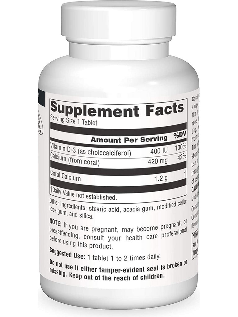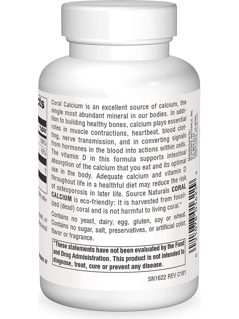 Coral Calcium is an excellent source of calcium, the single most abundant mineral in our bodies. In addition to building healthy bones, calcium plays essential roles in muscle contractions, heartbeat, blood clotting, nerve transmission, and in converting signals from hormones in the blood into actions within cells. The vitamin D in this formula supports intestinal absorption of the calcium that you eat and its optimal use in the body. Adequate calcium and vitamin D throughout life in a healthful diet may reduce the risk of osteoporosis in later life. Source Naturals Coral Calcium is eco-friendly: It is harvested from fossilized (dead) coral and is not harmful to living coral.