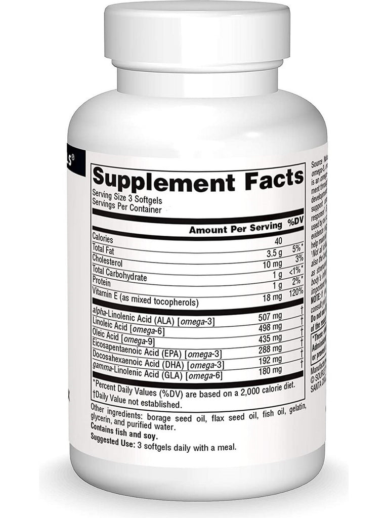Source Naturals COMPLETE ESSENTIAL FATTY ACIDS is a blend of omega-3, omega-6, and omega-9 fatty acids. Docosahexaenoic Acid (DHA) is an omega-3 fatty acid which plays a significant role in cerebral development throughout the life cycle, especially during the crucial period of fetal development and infancy. Both DHA and Eicosapentaenoic Acid (EPA) support cardiovascular health and the body’s healthy inflammatory response1. Gamma-Linolenic Acid (GLA) is an omega-6 essential fatty acid used by our cells to produce soothing PGE1 prostaglandins and preliminary evidence suggests that Oleic Acid, an omega-9 essential fatty acid, may help maintain blood pressure levels already in the normal range.