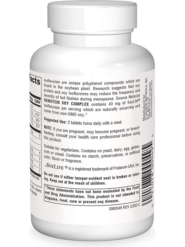 Isoflavones are unique polyphenol compounds which are found in the soybean plant. Research suggests that soy protein and soy isoflavones may reduce the frequency and severity of hot flashes during menopause. Source Naturals Genistein Soy Complex contains 40 mg of SoyLife® isoflavones per serving which are naturally occurring and come from non-GMO soy.