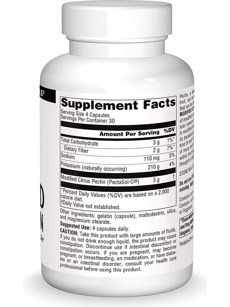 Pectin, a dietary fiber naturally present in citrus fruit, can be modified to create smaller fragments that can be utilized inside the body. Source Naturals Modified Citrus Pectin provides the same form of modified pectin shown in research to support cellular immune health. The galactosyl fractions found in modified pectin are believed to be responsible for its beneficial properties. These molecules appear to bind to and block galectin-3, a lectin on the surface of many cells that contributes to movement of cells within the body. These lectin-binding properties are thought to help promote good health.