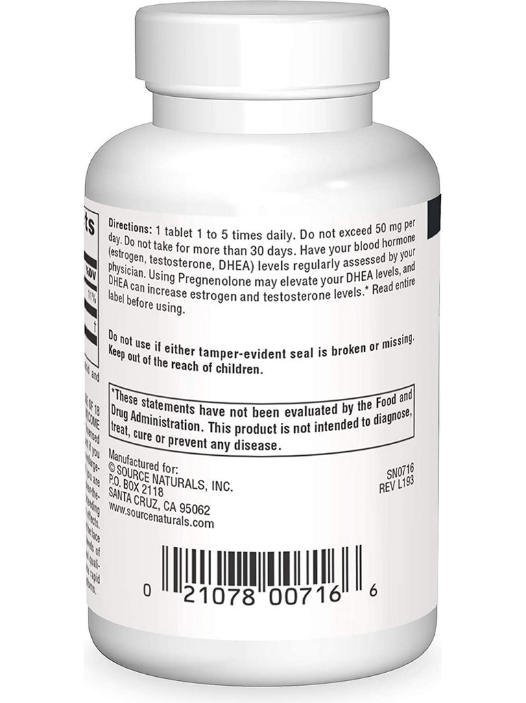 1 tablet 1 to 5 times daily. Do not exceed 50 mg per day. Do not take for more than 30 days. Have your blood hormone (estrogen, testosterone, DHEA) levels regularly assessed by your physician. Using Pregnenolone may elevate your DHEA levels, and DHEA can increase estrogen and testosterone levels.* Read entire label before using.