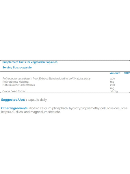 Source Naturals Resveratrol 200™ contains 200 mg of pure resveratrol, a compound produced by grapes and other plants for protection from environmental stresses. Recent studies have demonstrated that resveratrol activates SIRT I genes, which mimic the healthy aging benefits of caloric restriction. Resveratrol may support heart health by providing the antioxidant protection needed for healthy circulation, and by inhibiting inflammation messengers including NF kappa B.